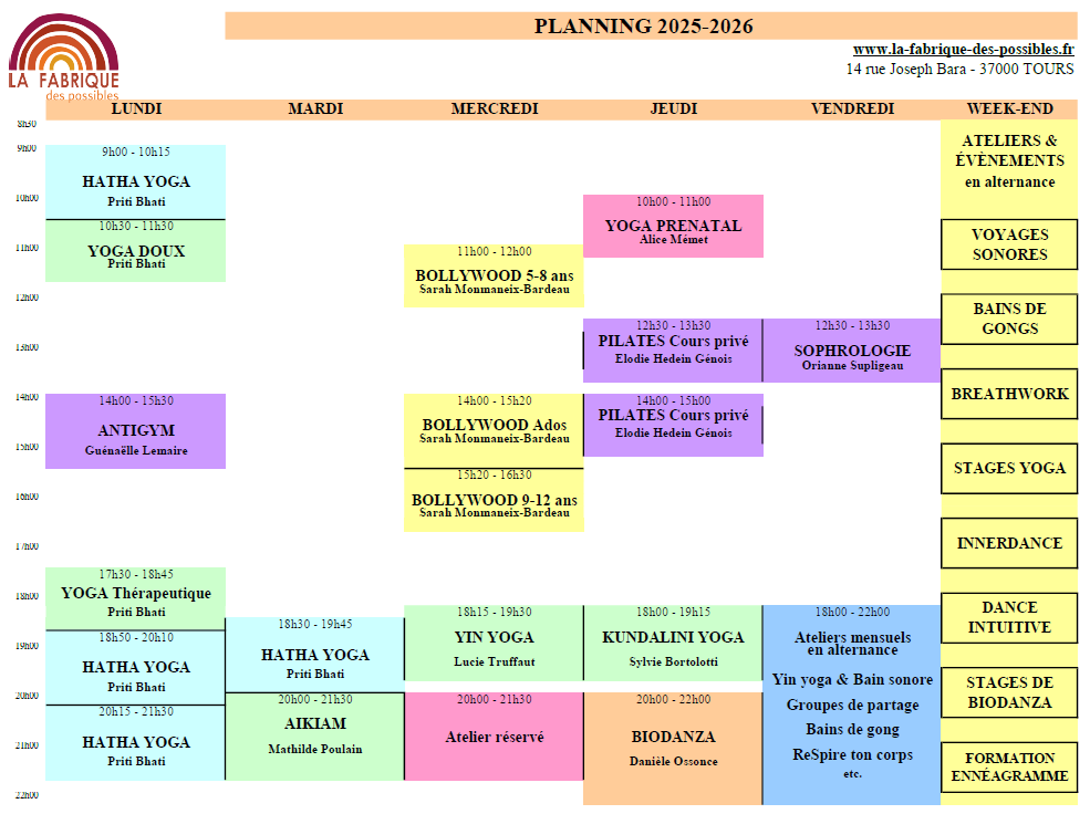 Téléchargez le PLANNING des COURS HEBDOMADAIRES ici